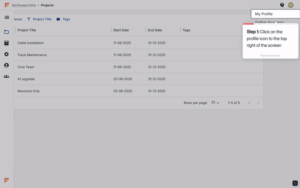 Click on your profile icon in the top right corner of the Gather platform and select ‘My Profile’.