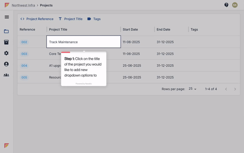 On the Project you would like to add new dropdown options to, navigate to the left-hand side menu and click the gear icon under the section ‘Project’.