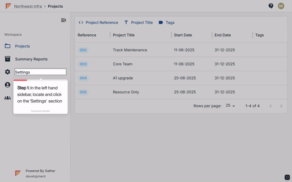 On the Project you would like to add new dropdown options to, navigate to the left-hand side menu and click the gear icon under the section ‘Workspace’.