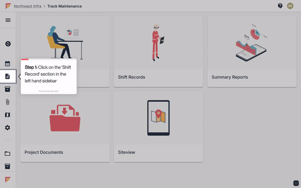 First, navigate to the Shift Record that you want to sign a Site Document for.