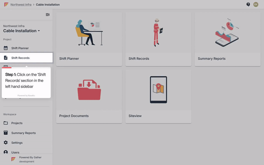 Click on the ‘Shift Records’ section in the left hand sidebar, or on the ‘Shift Records’ tile.